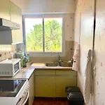 Appartement entierement rénové avec vue sur le bassin et villa St Yves parking privé assure votre confort en fournissant une cuisine équipée avec une bouilloire électrique, un réfrigérateur et de la vaisselle.